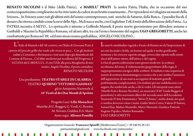 Paolo Failla interpreterà Ludovico Nota, Francesco Spinelli il Console Grotti, Francesco Chilà Franco La Spiga, Pasquale Pacilè il giornalista Cantavalle. Egizia Scopelliti sarà l’affittacamere Onoria, Ramona Santoro Emma. Jessica Seminara, Stella Barbaro e Maurizio Russo i personaggi – la “didascalia” e “i presentatori” del prologo.