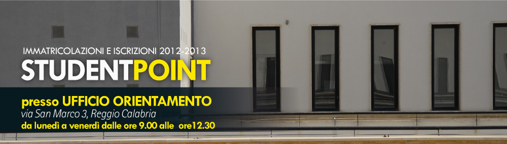 Per informazioni e assistenza agli studenti nelle procedure on line di immatricolazione ed iscrizione è operativo lo Student Point presso UniOrienta – Via San Marco, 3 - Reggio Calabria.