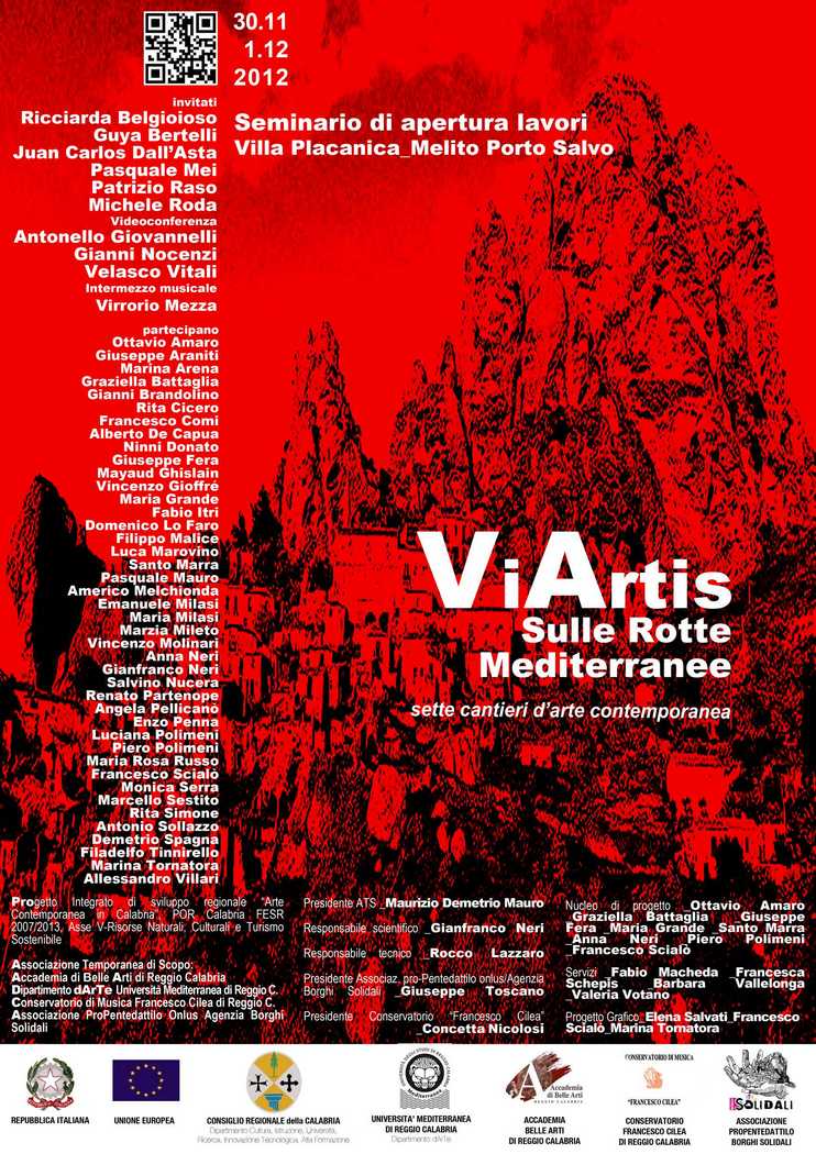 Venerdì 30 novembre alle ore 16.00 nell’Aula Magna dell’Accademia di Belle Arti di Reggio Calabria, alla presenza dell'Assessore regionale alla Cultura Mario Caligiuri, dei rappresentanti degli enti e delle istituzioni partner, e di studenti ed artisti, si terrà la conferenza stampa di presentazione del progetto “Via Artis - Sulle rotte mediterranee”.