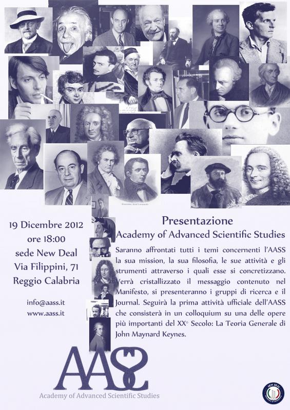 Seguirà la prima attività ufficiale dell’AASS che consisterà in un colloquium su una delle opere più importanti del XX° Secolo: La Teoria Generale di John Maynard Keynes.