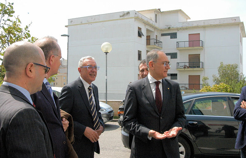 Durante la passeggiata in Ateneo, il Rettore ha mostrato i reperti archeologici dislocati negli spazi aperti e quelli sistemati nell’Atelier di Architettura. Poi una veloce escursione panoramica, occasione per illustrare il progetto della Casa dello Studente e la nuova arteria di collegamento tra Facoltà e Città.
