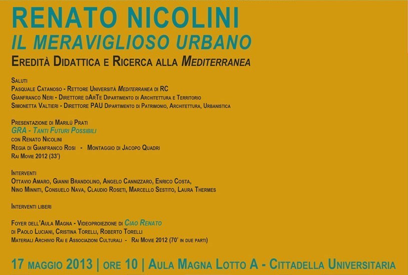 L’Università Mediterranea di Reggio Calabria rende omaggio a Renato Nicolini, professore ordinario di Composizione Architettonica dell’Ateneo dal 1987 fino alla sua scomparsa, il 4 agosto 2012.