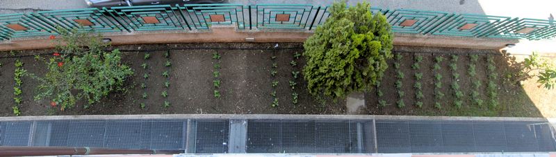 Hanno deciso di piantarla, ma con stile, prendendo spunto dall'idea del collega Cosimo Chirico. Il risultato è l'orto realizzato che vedete: 3x36 metri di pomodori, melenzane, peperoni, zucchine, peperoncino ed erbe officinali con tanto di irrigazione a goccia.