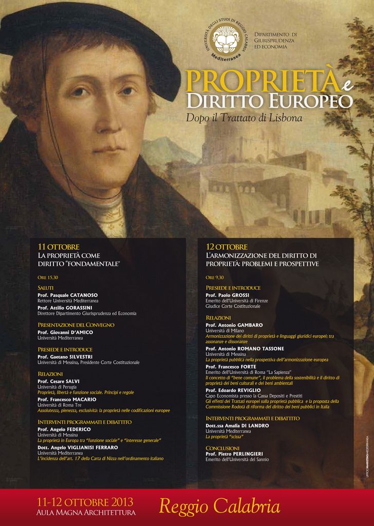 11-12 ottobre "Proprietà e diritto europeo dopo il Trattato di Lisbona" - con Gaetano Silvestri