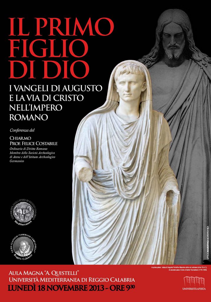 Nell’ambito del programma “Università aperta” della Mediterranea e in occasione delle manifestazioni in onore del bicentenario del Liceo Classico “T. Campanella” di Reggio Calabria, si terrà lunedì 18 novembre alle ore 9.30 presso l’Aula Magna “A. Quistelli” dell’ateneo reggino, la conferenza del prof. Felice Costabile dal titolo “Il primo Figlio di Dio - I Vangeli di Augusto e la via di Cristo nell’Impero romano”.
