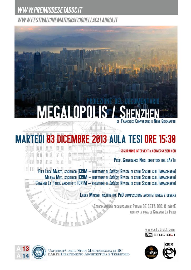 L’iniziativa, promossa dal Dipartimento di Architettura e Territorio - dArTe - e dal Premio De Seta doc, propone una riflessione su Shenzhen, paradigma di città costruita dal nulla, di città senza memoria, di città-fabbrica del mondo. Shenzen, da villaggio costiero cinese di circa 20 mila pescatori, è divenuta in trent’anni e in seguito alla designazione da parte di Deng Xiao Ping di “Zona Economica Speciale”, una megalopoli con più di 12 milioni di abitanti.