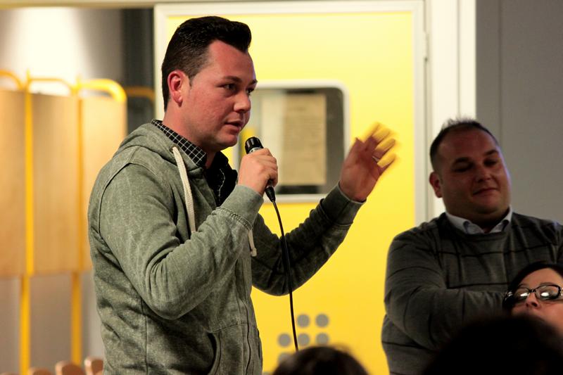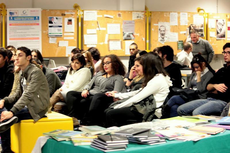 Gli studenti, assiepati in uno spazio volutamente anonimo e non accademico, hanno incontrato, appunto, Domenico e Ciro, due ragazzi con un passato nel tunnel della tossicodipendenza, oggi componenti della Comunità “La Casa di Mimmo” di Santo Stefano d’Aspromonte, appartenente alla fondazione Exodus di Don Mazzi.