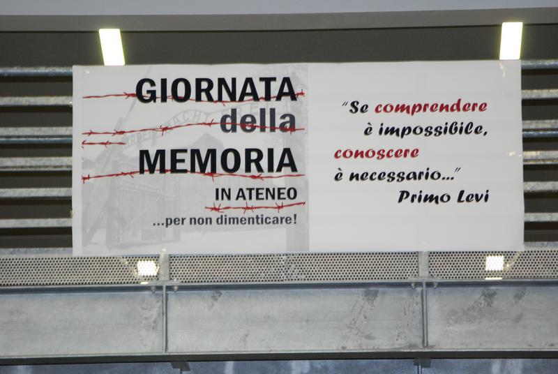 Una candela accesa – nel mezzo dell’androne di ingresso del Lotto D di una cittadella universitaria gremita di studenti, docenti, gente comune – per gettare ombra su una delle pagine più tristi ed ignobili della storia dell’umanità, ma anche per tenere accesi il ricordo e la speranza.