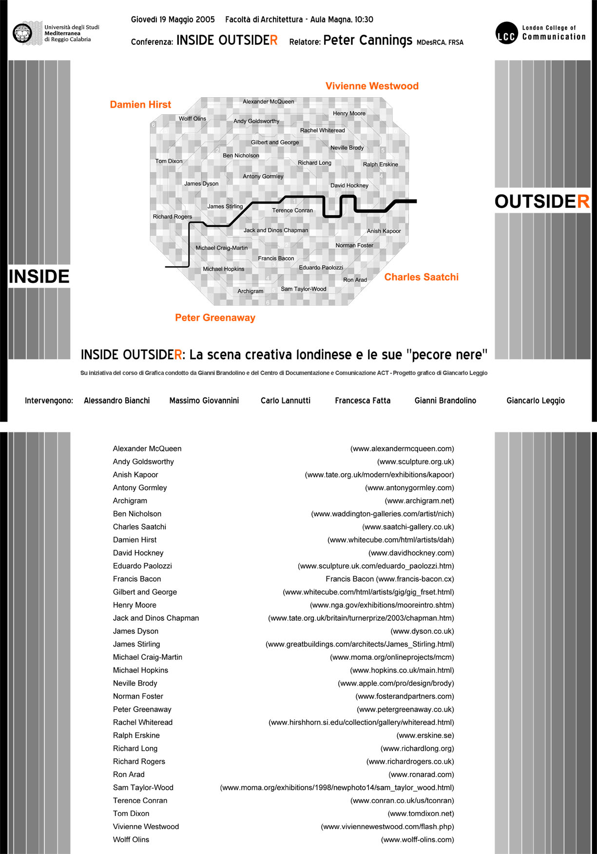 Alle ore 10.30 presso l'Aula magna della facoltà di Architettura il prof. Peter Cannings relazionerà nella conferenza Inside Outsider.