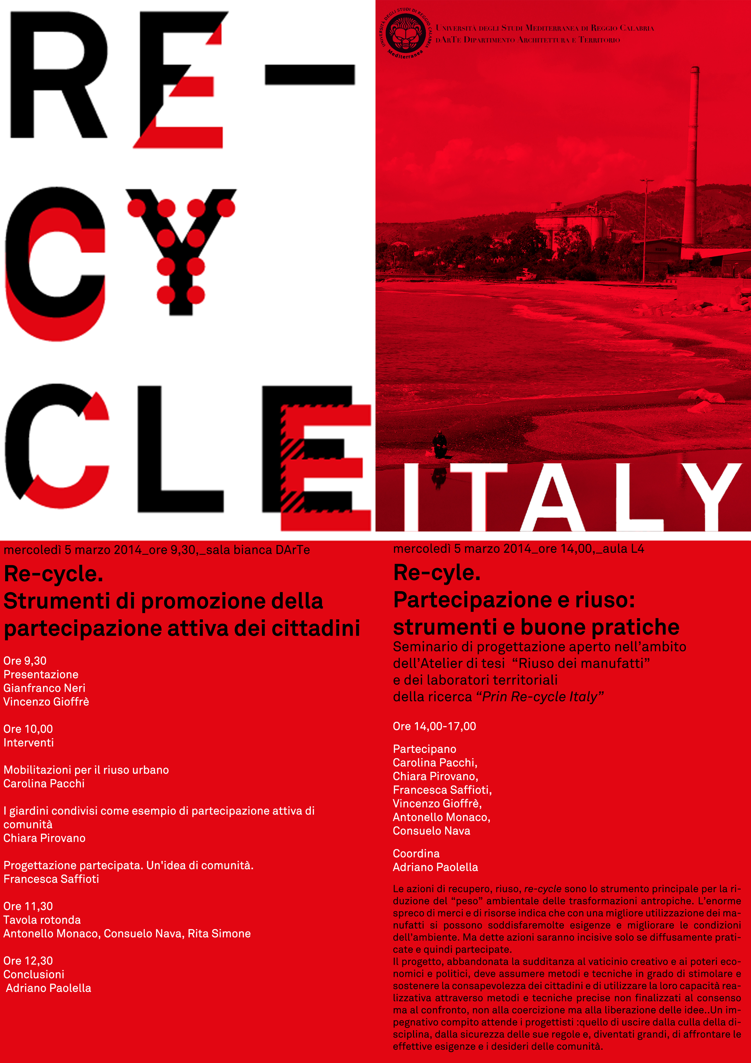 Nell’ambito della ricerca Prin Re-cycle Italy si svolgeranno i due seminari aperti: