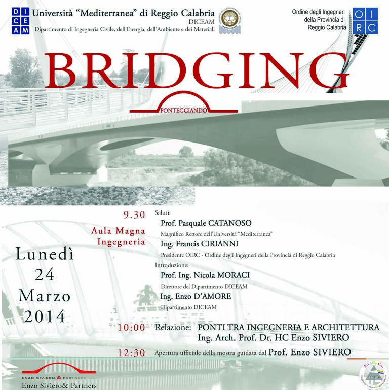 Enzo Siviero, professore ordinario di Tecnica delle costruzioni presso l’Università IUAV di Venezia, svilupperà il tema del ponte mostrandone le affascinanti implicazioni interdisciplinari tra ingegneria ed architettura. Al termine del convegno il prof. Siviero ci guiderà alla visione della mostra che raccoglie alcune sue opere rappresentative del suo impegno nel campo della ricerca, della didattica e della professione.