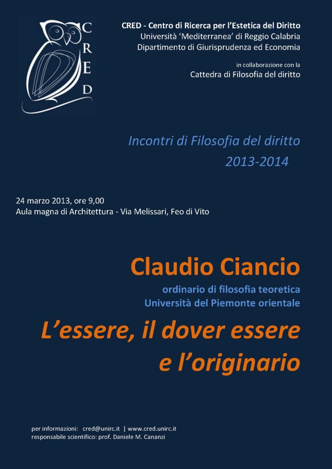 con Claudio Ciancio, ordinario di filosofia teoretica all'Università del Piemonte orientale.