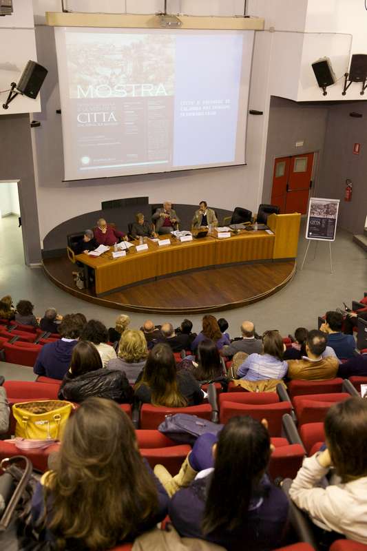 Relazioneranno Marco Cadinu, curatore della mostra, Francesca Valensise e Nicola Aricò, autori di contributi pertinenti la Calabria e Messina. La mostra, che sarà aperta al pubblico sino al 15 aprile 2014, contiene una sintesi delle ricerche sulle differenti tecniche di rappresentazione adoperate per ritrarre città europee tra il tardo Medioevo e il Novecento. Se ne discusse in una serie di Convegni, i cui contributi sono stati editi in due volumi nella Rivista Nazionale Storia dell'Urbanistica (2010).