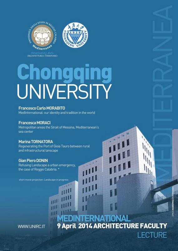 10 aprile 2014. La delegazione dell’Università Mediterranea di Reggio Calabria, formata dal prorettore all’Internazionalizzazione, prof. Carlo Morabito, dalla prof.ssa Marina Tornatora, delegata all’Internazionalizzazione del Dipartimento dArTe, dal prof. Gianpiero Donin e dalla prof.ssa Francesca Moraci, ha sottoscritto un accordo bilaterale con la Chongqing University (Repubblica Popolare Cinese). Alla cerimonia, per la CQU erano presenti il prorettore dr. Qing Liu, il preside della Facoltà di architettura e Urban plannig prof. Zhao Wanmin, i responsabili alle relazioni internazionali prof.ssa Li Jing e prof. Li Bin. Presente il Console generale d’Italia Sergio Maffettone.