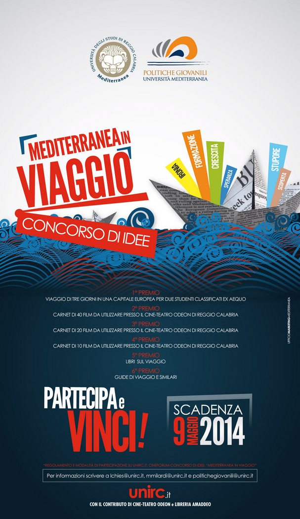 “Mediterranea in viaggio”, entro il 19 Maggio 2014 al al Servizio per le Politiche Giovanili di Ateneo, presso l’Ufficio Protocollo.