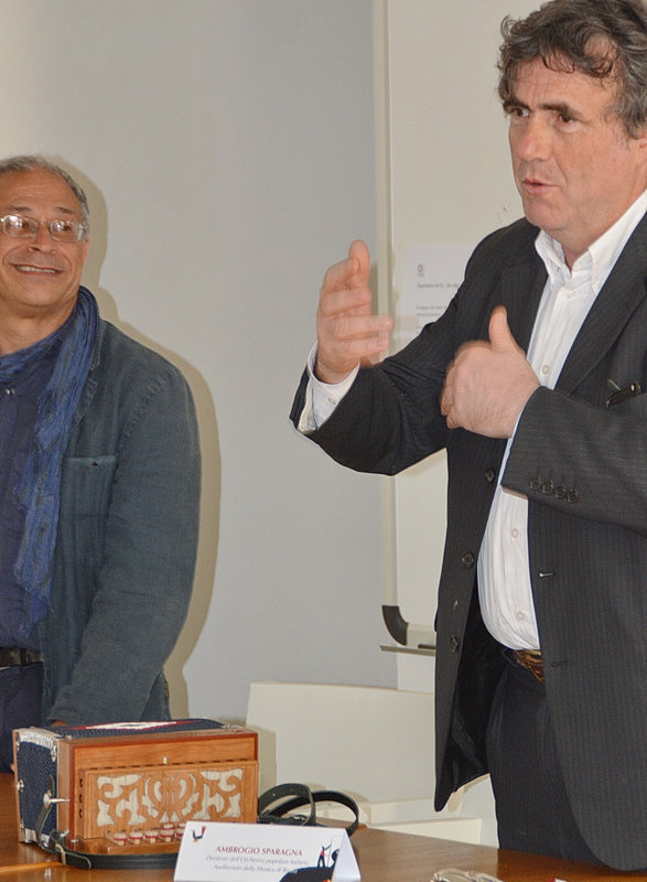 Emozione e forza nelle parole di Demetrio Spagna, presidente del MuStruMu, che ha chiamato a se diversi collaboratori. In bella mostra il primo organetto realizzato da Francesco Marino, con i consigli del maestro Francesco Marrara. Lo strumento, dopo una passaggio nelle sapienti mani di Ambrogio Sparagna, troverà collocazione nel Museo dello Strumento Musicale.