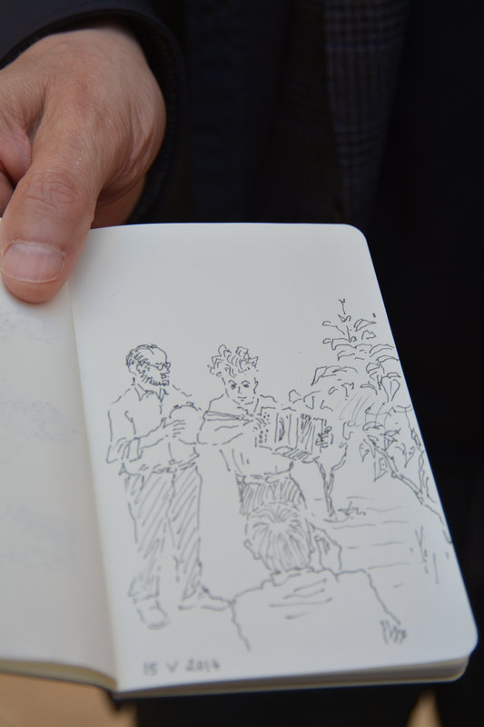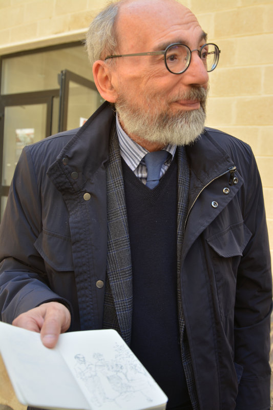 Finale coinvolgente nel cortile antistante l’Aula con le musiche del maestro Sparagna, immortalate nei disegni di Mario Manganaro, ordinario di disegno all’Università di Messina.
