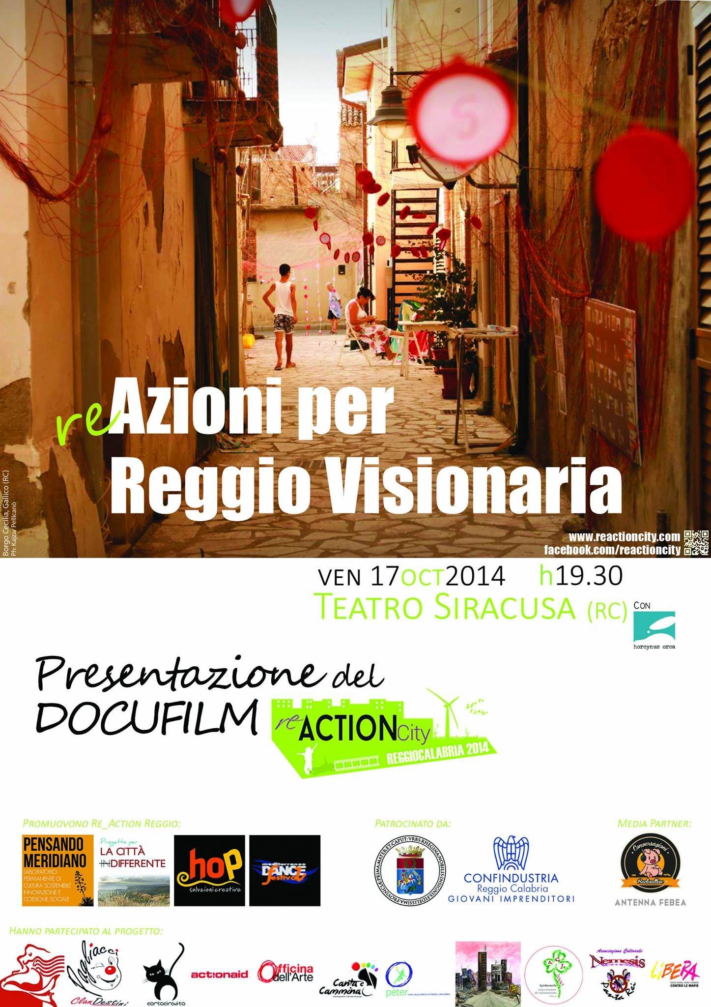 Si presenta il DOCUFILM re_azioni visionarie per la citta di reggio calabria, ven. 17 ottobre al Teatro Siracusa ore 19.30, con la collaborazione della fondazione Horcinus Orca.