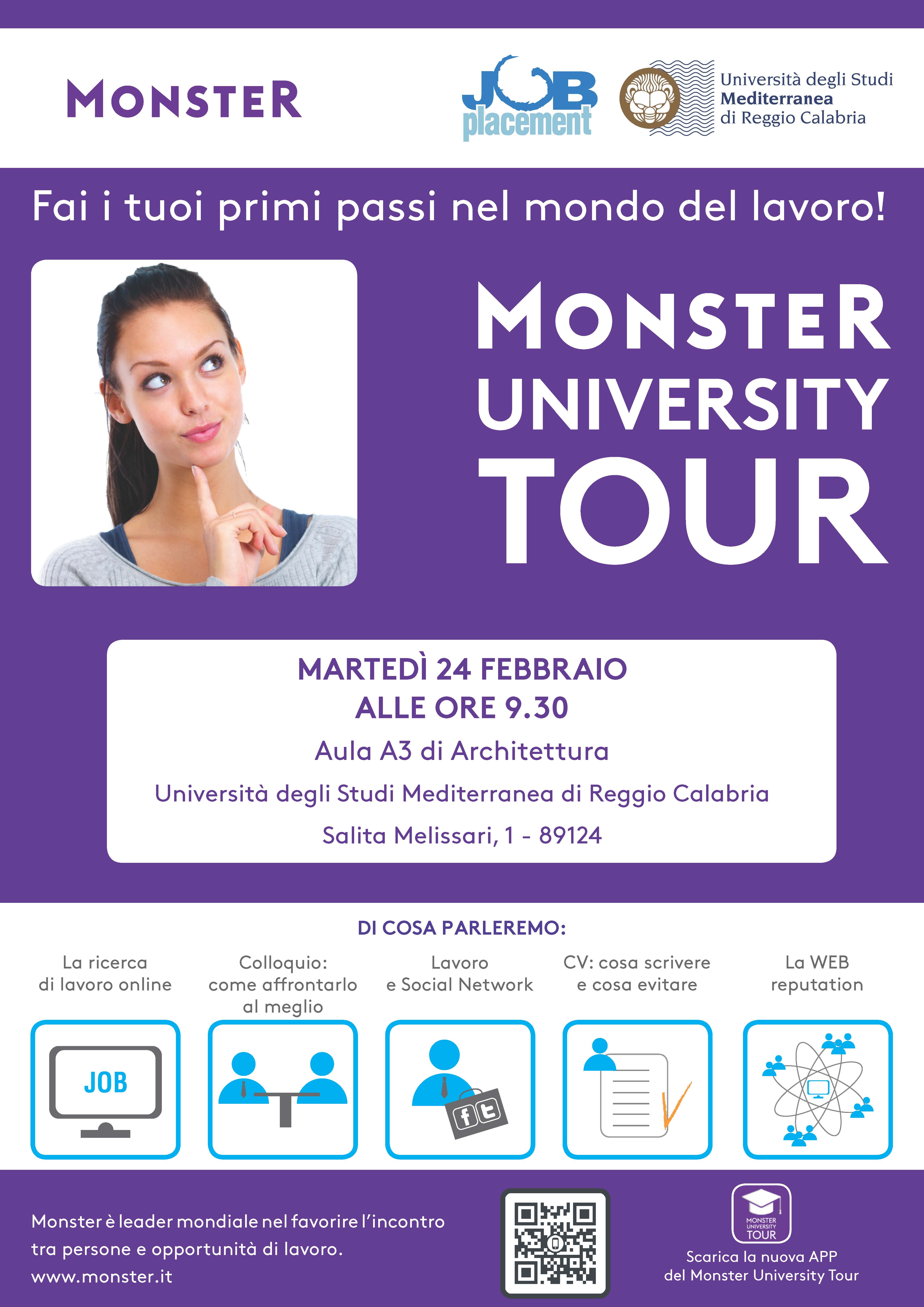 Il Centro UniOrienta/Job Placement ti invita al MONSTER UNIVERSITY TOUR 2015