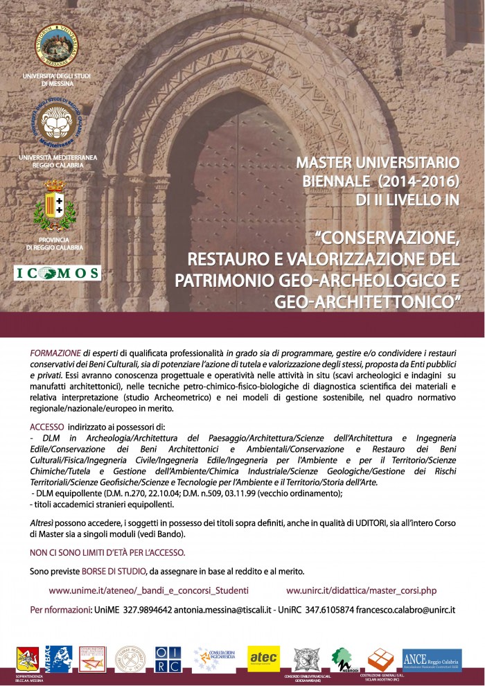 Su proposta del Dipartimento di FISICA e di SCIENZE DELLA TERRA (D.F.S.T.) dell'Università di Messina, in compartecipazione con il Dipartimento PAU della Mediterranea, è stato attivato il Corso di Master Universitario di II livello, di durata biennale, in "Conservazione, Restauro e Valorizzazione del Patrimonio Geo-Archeologico e Geo-Architettonico".