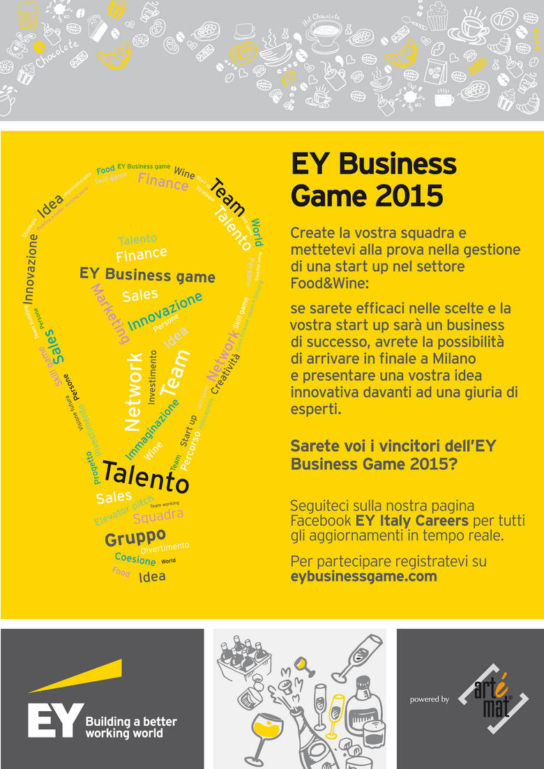 “EY Business Game 2015” è una Business Game Competition organizzata da EY in tutte le università Italiane, per gli studenti iscritti a lauree magistrali delle aree dell’Economia e dell’Ingegneria e ai laureati magistrali (da massimo 6 mesi dalla pubblicazione del regolamento) nelle medesime Lauree*(Vedi Classi di Lauree Ammesse).
