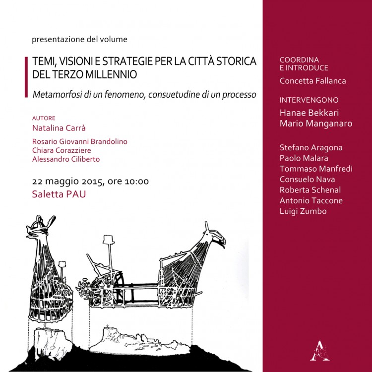 Il prossimo venerdì 22 maggio alle ore 10.00 presso la saletta del Dipartimento PAU, si terrà la presentazione del volume: Temi, visioni e strategie per la città storica del terzo millennio. Metamorfosi di un fenomeno, consuetudine di un processo edito da Aracne della professoressa Natalina Carrà con il professore Rosario Giovanni Brandolino, Alessandro Ciliberto e Chiara Corazziere.