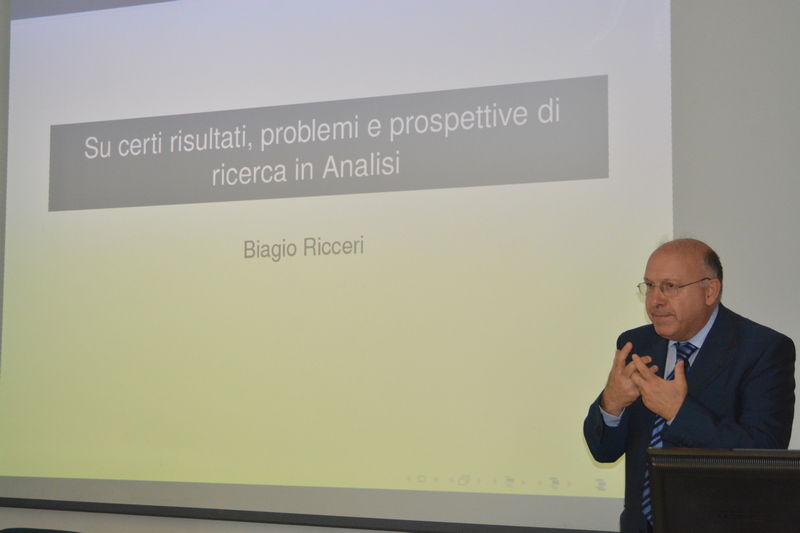 Il prof. Ricceri, ordinario di Analisi Matematica presso l’Università di Catania, è autore di numerosi lavori in tale settore con particolare riferimento alla Teoria delle Multifunzioni e al Calcolo delle Variazioni. E’ inoltre membro del comitato editoriale di alcune riviste scientifiche di pregio nell’ambito di tali tematiche. Le sue tecniche innovative sono state usate da svariati autori per lo studio di problemi differenziali non-lineari quali, ad esempio, equazioni di Schroedinger e di tipo Kirchhoff, di particolare interesse nel campo della Fisica. Nel corso della sua carriera, il prof. Ricceri ha iniziato alla ricerca numerosi studenti, molti dei quali oggi prestano servizio, a vario titolo, in vari Dipartimenti dell’area dello stretto.