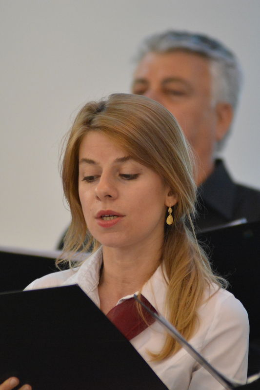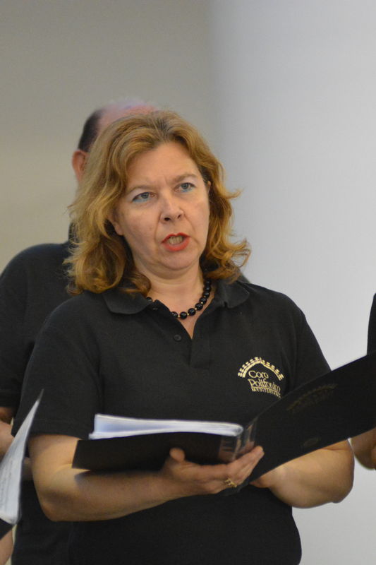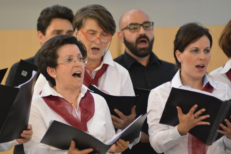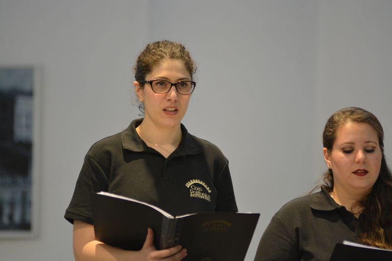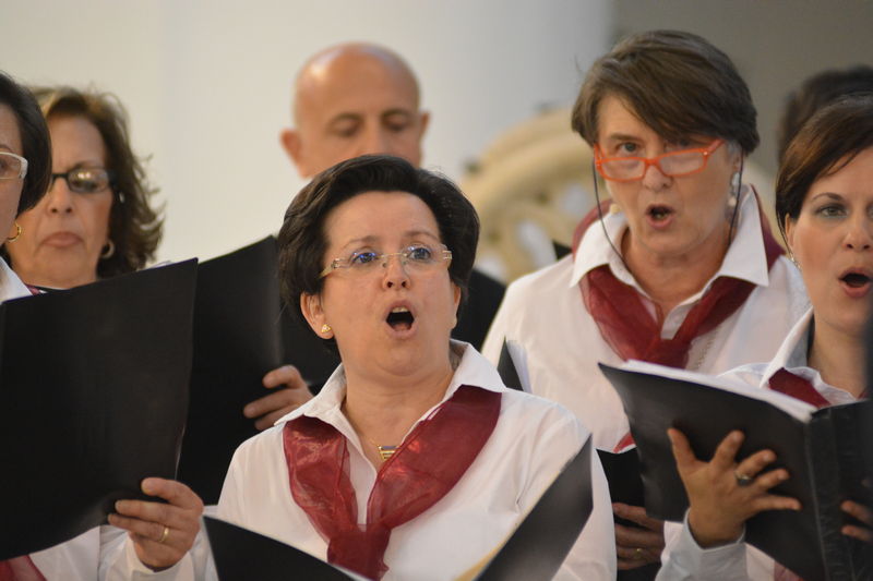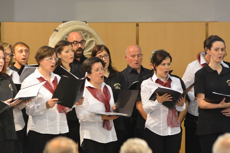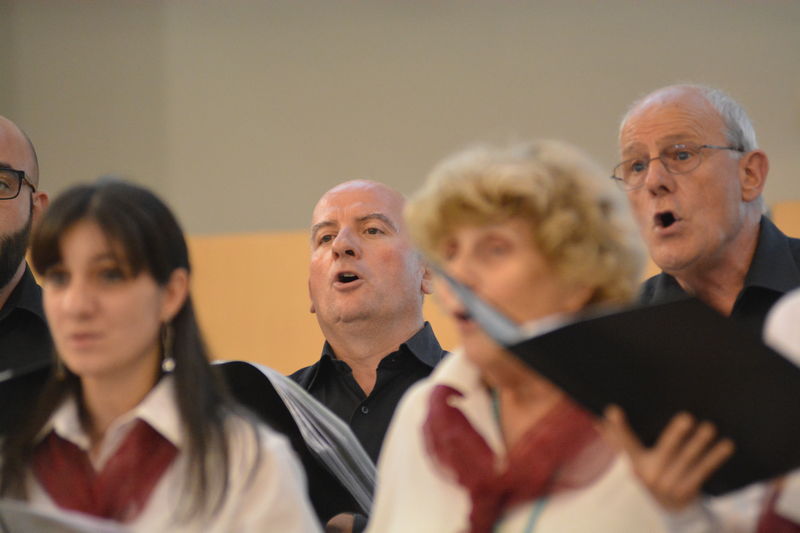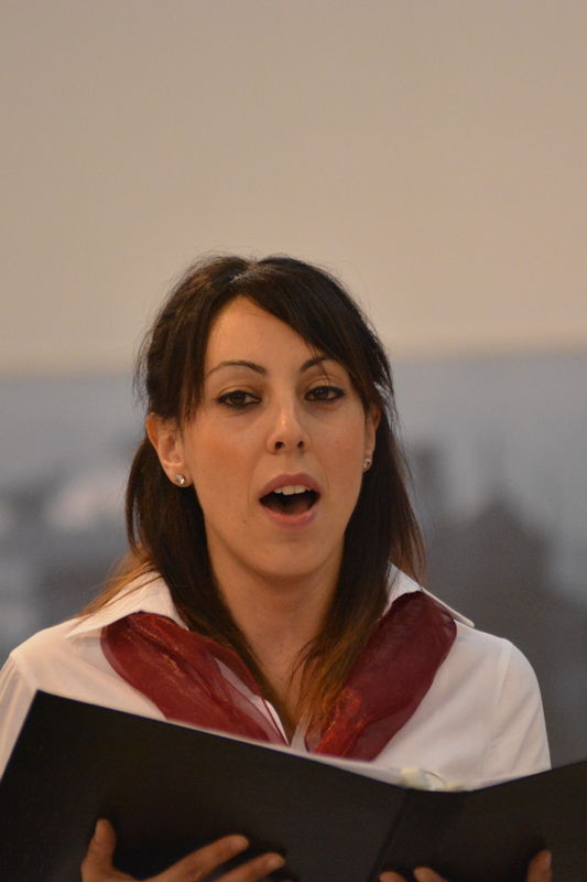 Il coro della Mediterranea, che è ritornato al centro della scena nella seconda parte del concerto, ha proposto al pubblico presente in sala diversi brani spaziando dalla polifonia sacra (un “Ave Maria” e il “Locus Iste”), alla versione polifonica di pezzi di musica leggera come “What a wonderful world” e “Moon River” finendo con l’arrangiamento a 5 voci dispari della “Calabrisella” che tanti successi già aveva riscosso durante la trasferta urbinate. Durante alcuni brani gli spettatori hanno avuto il piacere di ascoltare il pianoforte del Maestro Sergio Puzzanghera, che ha accompagnato il coro della Mediterranea in questa esibizione. Per finire, ancora insieme, a cori uniti diretti dal M° Maria Carmela Ranieri è stato eseguito il “Canticorum Jubilo” tratto dall’oratorio di Handel “Giuda Maccabeo”.