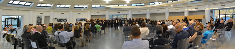 Entusiasta e pieno di novità l’intervento in apertura del Rettore dell’Università Mediterranea Pasquale Catanoso che, oltre il benvenuto a tutti i presenti, al coro dell’ Università della Calabria e al suo Rettore, ha annunciato che la CRUI (Conferenza Rettori Università italiane- ndr) ha intenzione di dare ancora maggior risalto alle attività culturali in senso ampio (attività musicali e teatrali) all’interno delle comunità accademiche, soprattutto alla formazione dei cori presso gli atenei dove ancora non sono nati, proprio per la lunga tradizione che l’attività corale ha nelle università, ma soprattutto per la valenza culturale e sociale intrinseca del “fare coro” che favorisce la creazione in sé di una comunità accademica a 360°. Il concerto congiunto dei due cori si è tenuto nell’Altelier della Cittadella universitaria: la terrazza sullo Stretto privilegiata della Mediterranea, che ha meravigliato tutti coloro che vi accedevano per la prima volta, strappando parole di elogio anche al Rettore dell’Università della Calabria Gino Crisci che ha sottolineato, nel suo intervento a conclusione del concerto, come questi luoghi - oltre che le reciproche realtà corali - meritino di ospitare e di essere conosciuti al di fuori delle nostre città, magari organizzando raduni a livello nazionale anche dei cori universitari stessi.