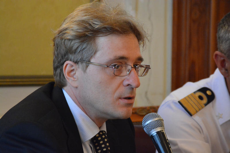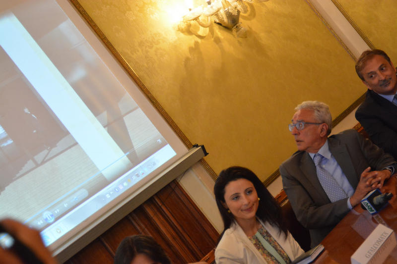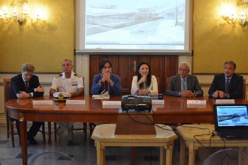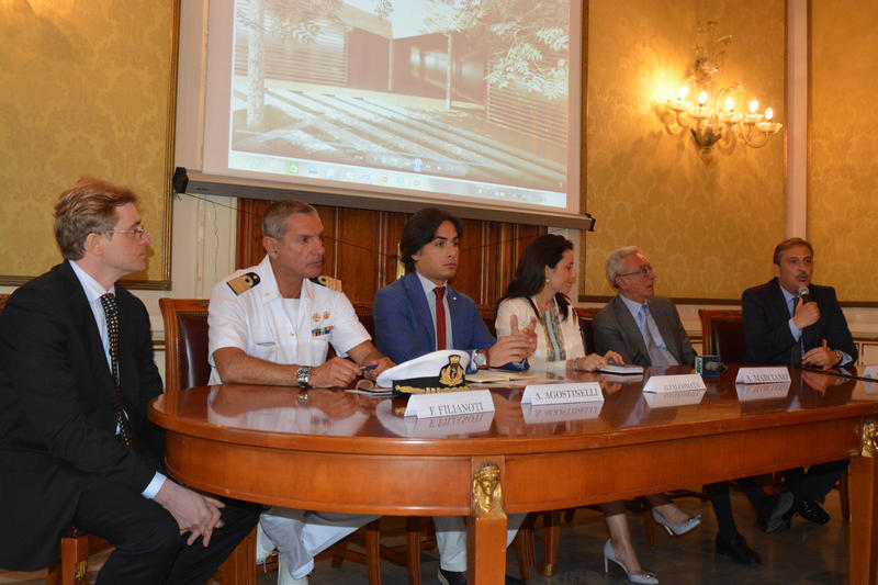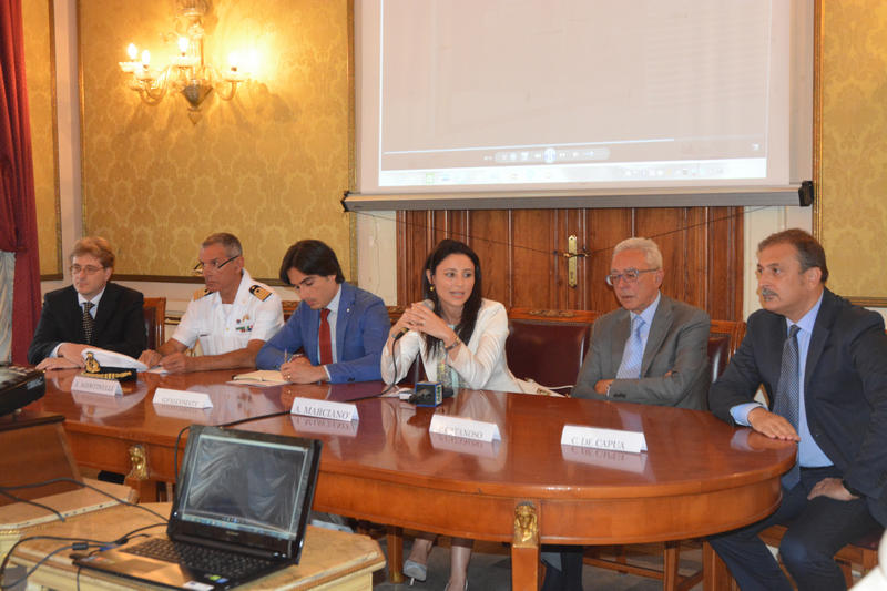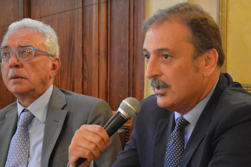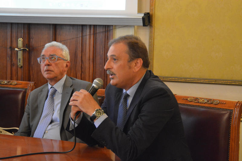 Conferenza stampa al Salone dei Lampadari di Palazzo San Giorgio per la presentazione di Lab_Renew_Mel, il nuovo laboratorio dell'Università Mediterranea per la ricerca sulla produzione di energia rinnovabile, nell'ambito del programma europeo Horizon 2020.