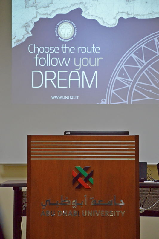 In seguito è stata svolta, in forma seminariale, un’ampia presentazione della realtà universitaria reggina, delle ricerche in atto e delle esperienze didattiche degli studenti, che si è conclusa con un proficuo dibattito con numerosi docenti e studenti dell’Università di Abu Dhabi.