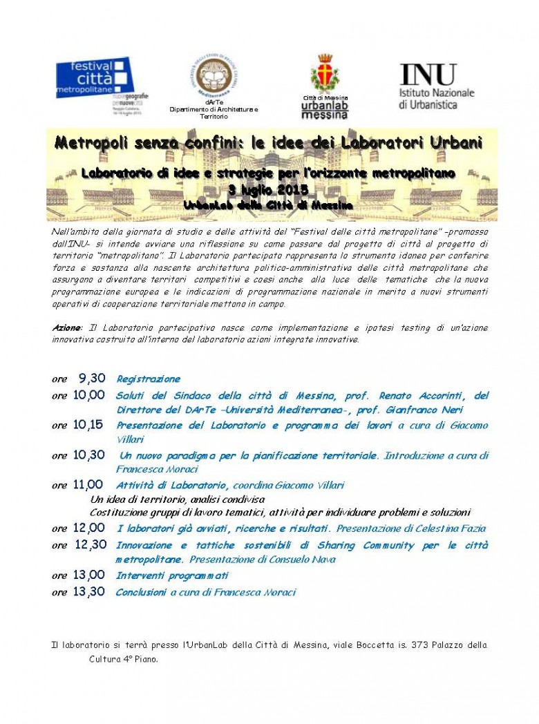3 luglio Metropoli senza confini: le idee dei Laboratori Urbani. Laboratorio di idee e strategie per l’orizzonte metropolitano