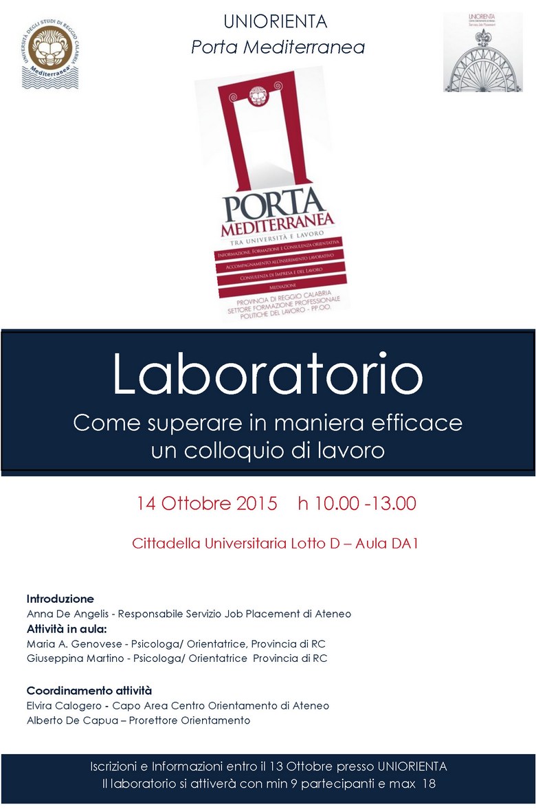Anna De Angelis Responsabile Job Placement: jobplacement@unirc.it - Tel.: 0965/1691408
