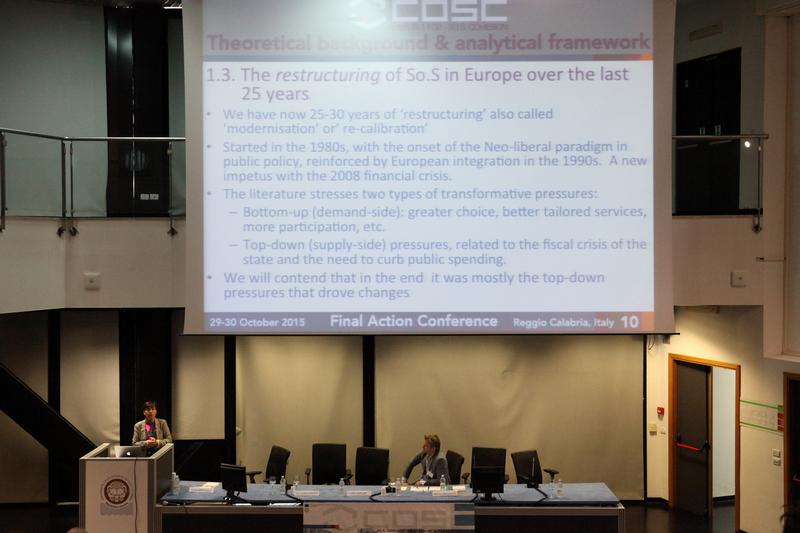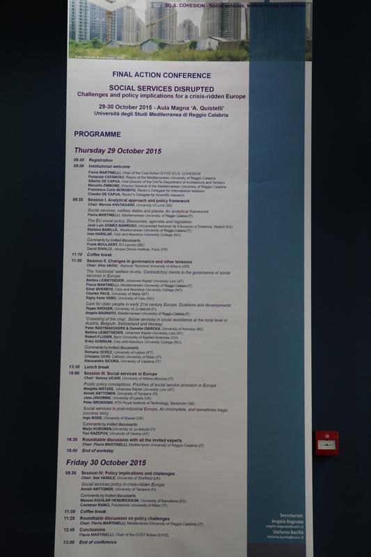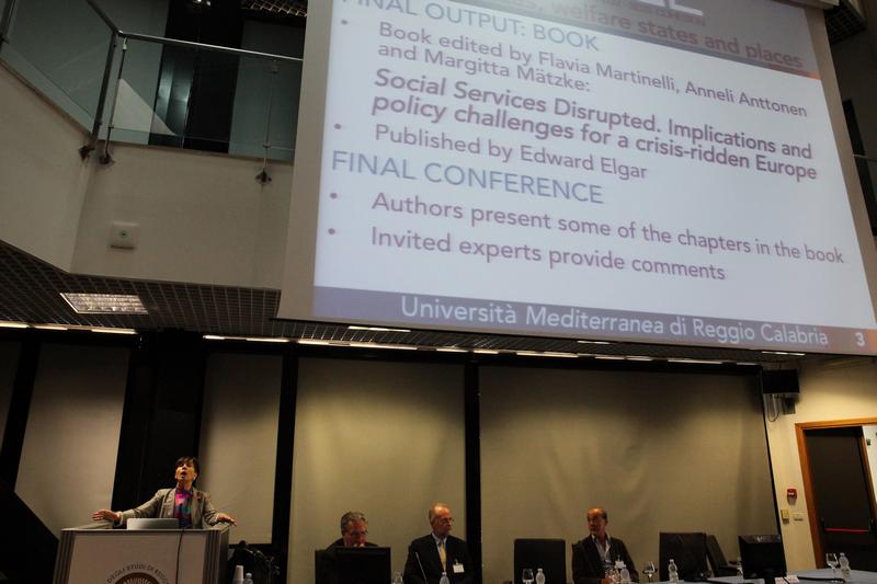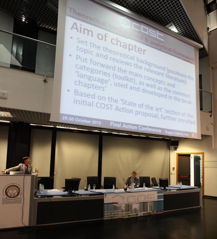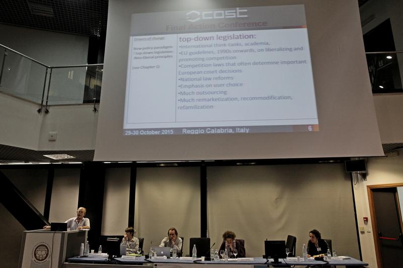 Nei giorni 29-30 ottobre 2015 si terrà a Reggio Calabria, presso l’Aula Magna ‘A. Quistelli’, la Conferenza finale dell’Azione, con la partecipazione anche di esperti esterni e di osservatori dal COST Office di Bruxelles. Nel corso della Conferenza saranno presentati i principali risultati del confronto scientifico sviluppato nel corso dell’Azione. Tali risultati saranno pubblicati dalla casa editrice Edward Elgar in un volume collettaneo dal titolo Social services disrupted. Challenges and policy implications for a crisis-ridden Europe.
