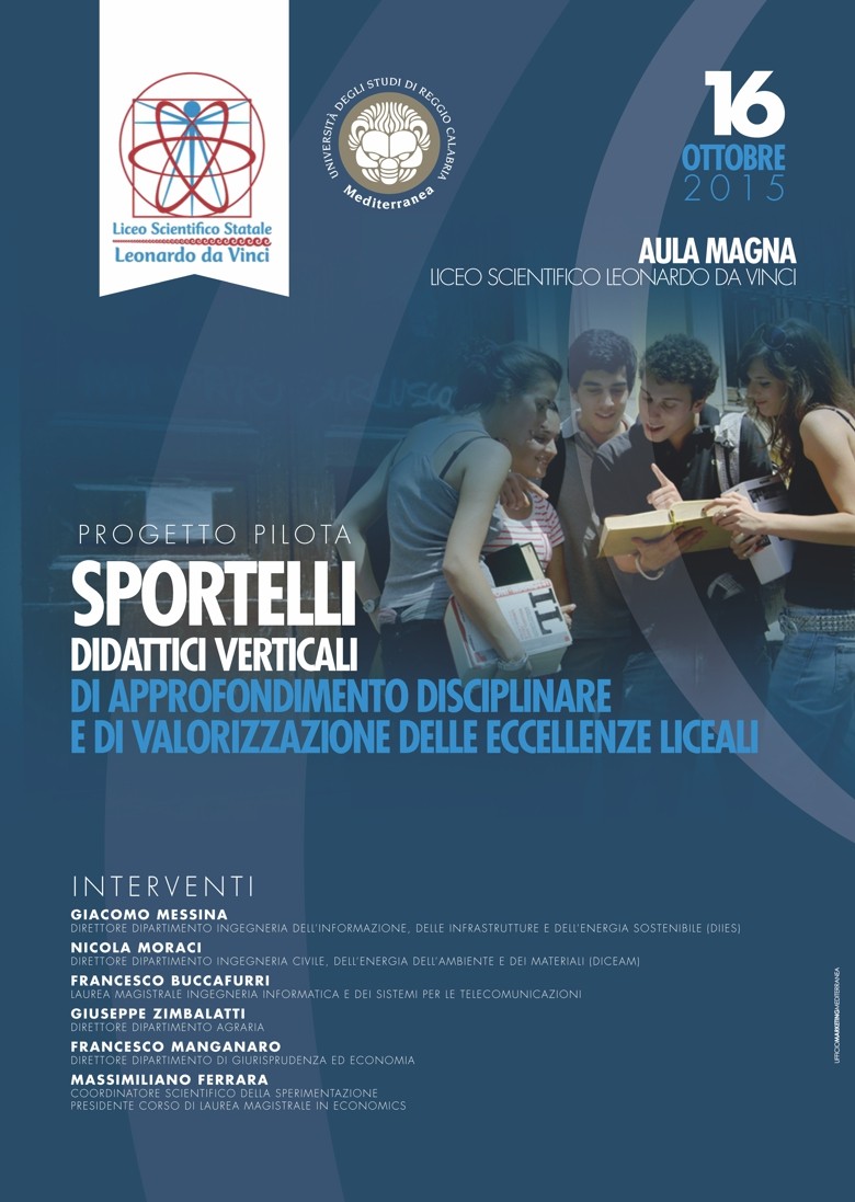 Venerdì 16 ottobre alle ore 11.00, nell’Aula magna del Liceo scientifico Leonardo da Vinci di Reggio Calabria si svolgerà la conferenza stampa di presentazione del percorso sperimentale “Sportelli didattici verticali di approfondimento disciplinare e valorizzazione delle eccellenze liceali”, promosso dal Liceo e dall’Università Mediterranea.