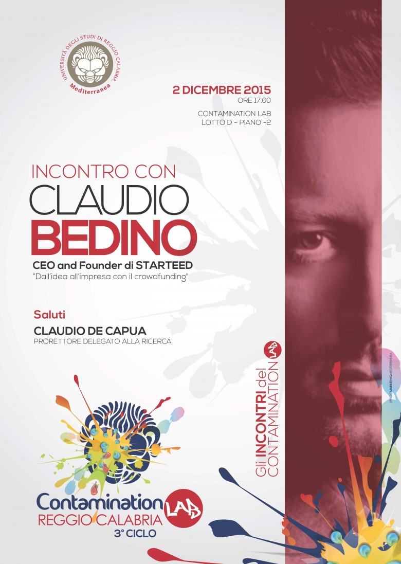 Nell'ambito delle attività del Contamination Lab, mercoledì 2 dicembre alle ore 17 si terrà il seminario dal titolo: "Dall'idea all'impresa con il Crowdfunding" tenuto da Claudio Bedino, fondatore di Starteed.