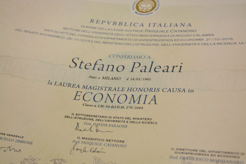Venerdì 11 marzo alle ore 11.00, in Aula Magna “Antonio Quistelli”, l’Università degli studi Mediterranea di Reggio Calabria conferisce la laurea honoris causa in Economia a Stefano Paleari, già rettore dell'Università degli Studi di Bergamo (2009/2015) e presidente della CRUI dal 2013 al 2015.