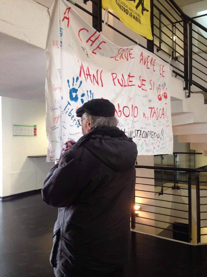 Ieri, 15 marzo, è stata (ri)aperta la Sanitaria S. Elia in un bene confiscato alla criminalità, sito sul Lungomare Matteotti: alcuni studenti hanno consegnato a Tiberio ed Enza uno striscione ricco di firme ed espressione di solidarietà e vicinanza. Ecco alcune foto dell'iniziativa: