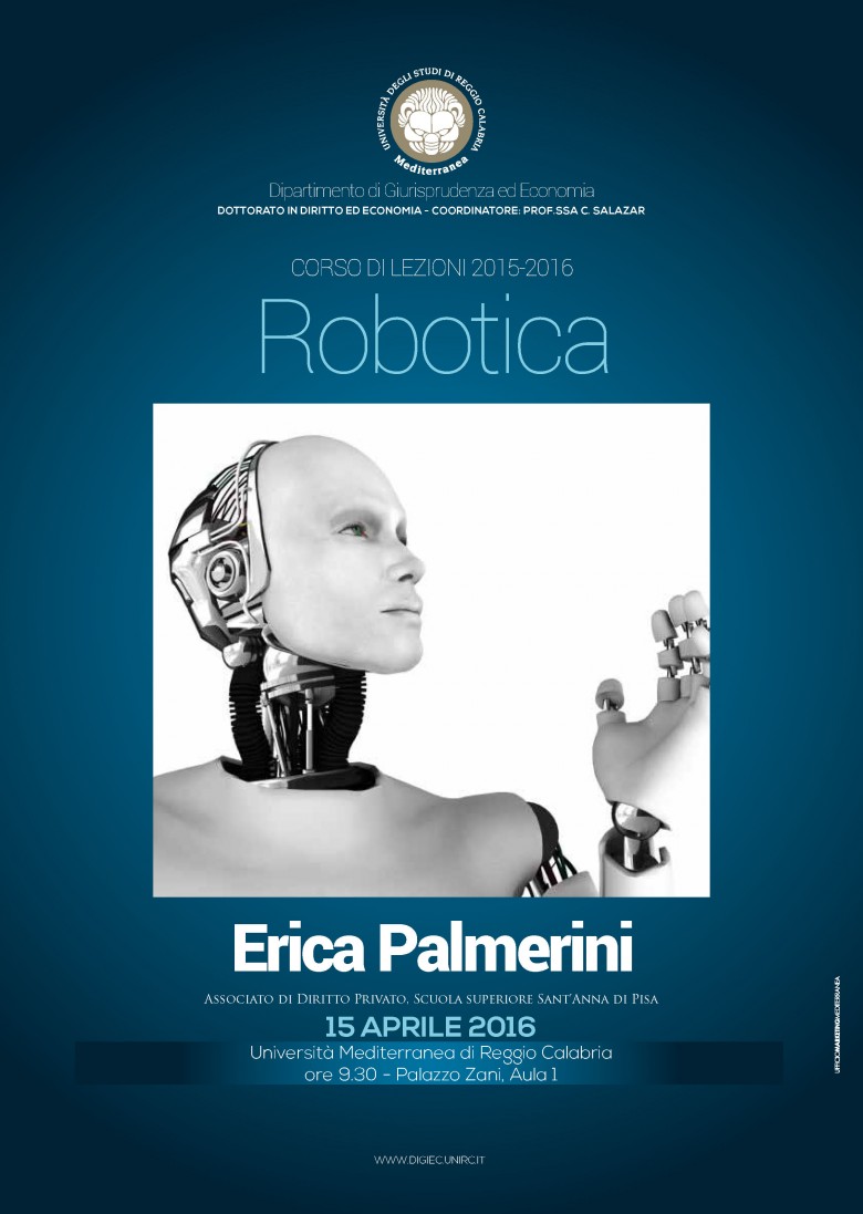 Venerdì 15 Aprile la prof.ssa Erica Palmerini svolgerà una lezione sulla robotica, alle ore 9.30, sempre presso Palazzo Zani, Aula 1.