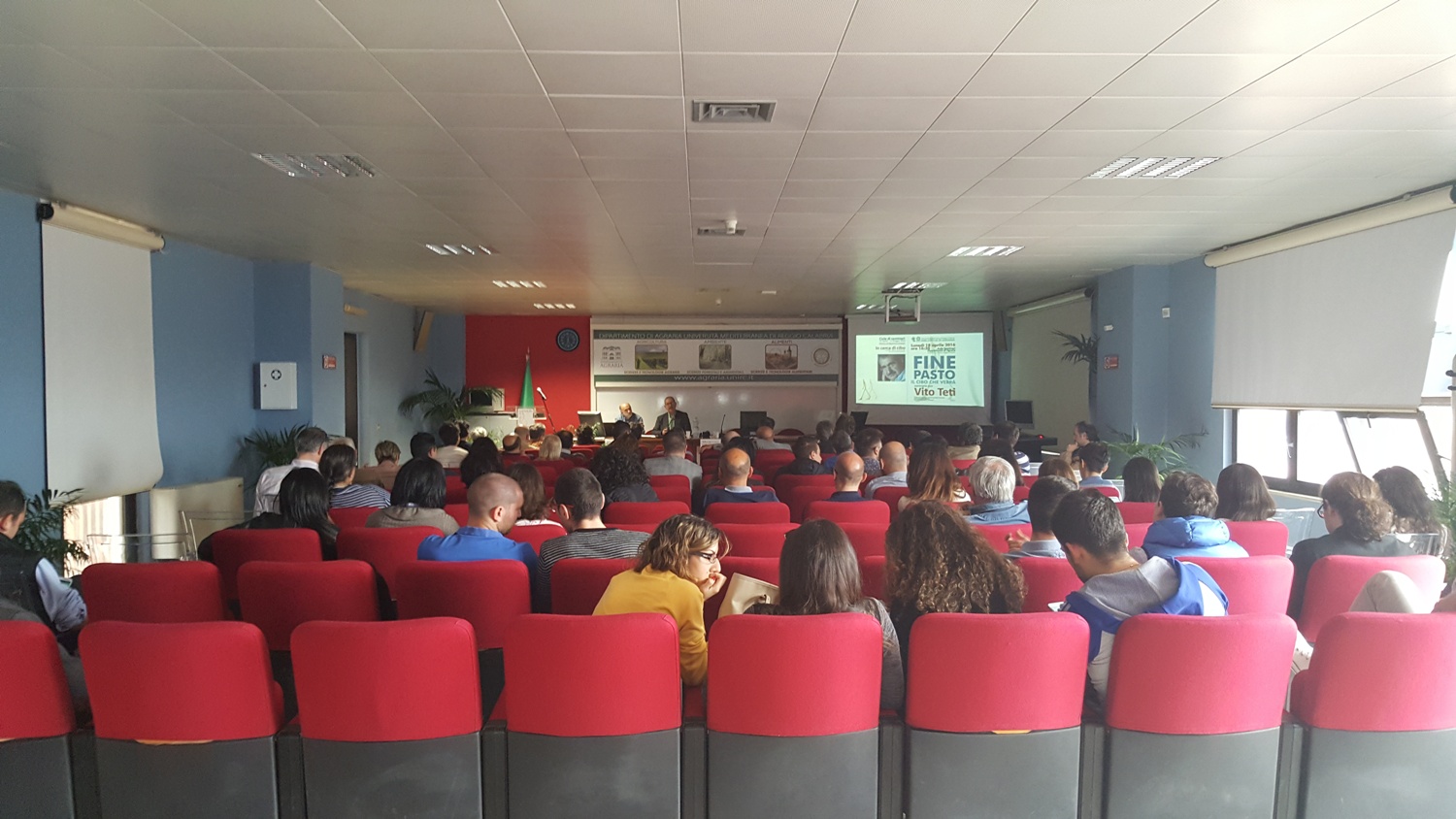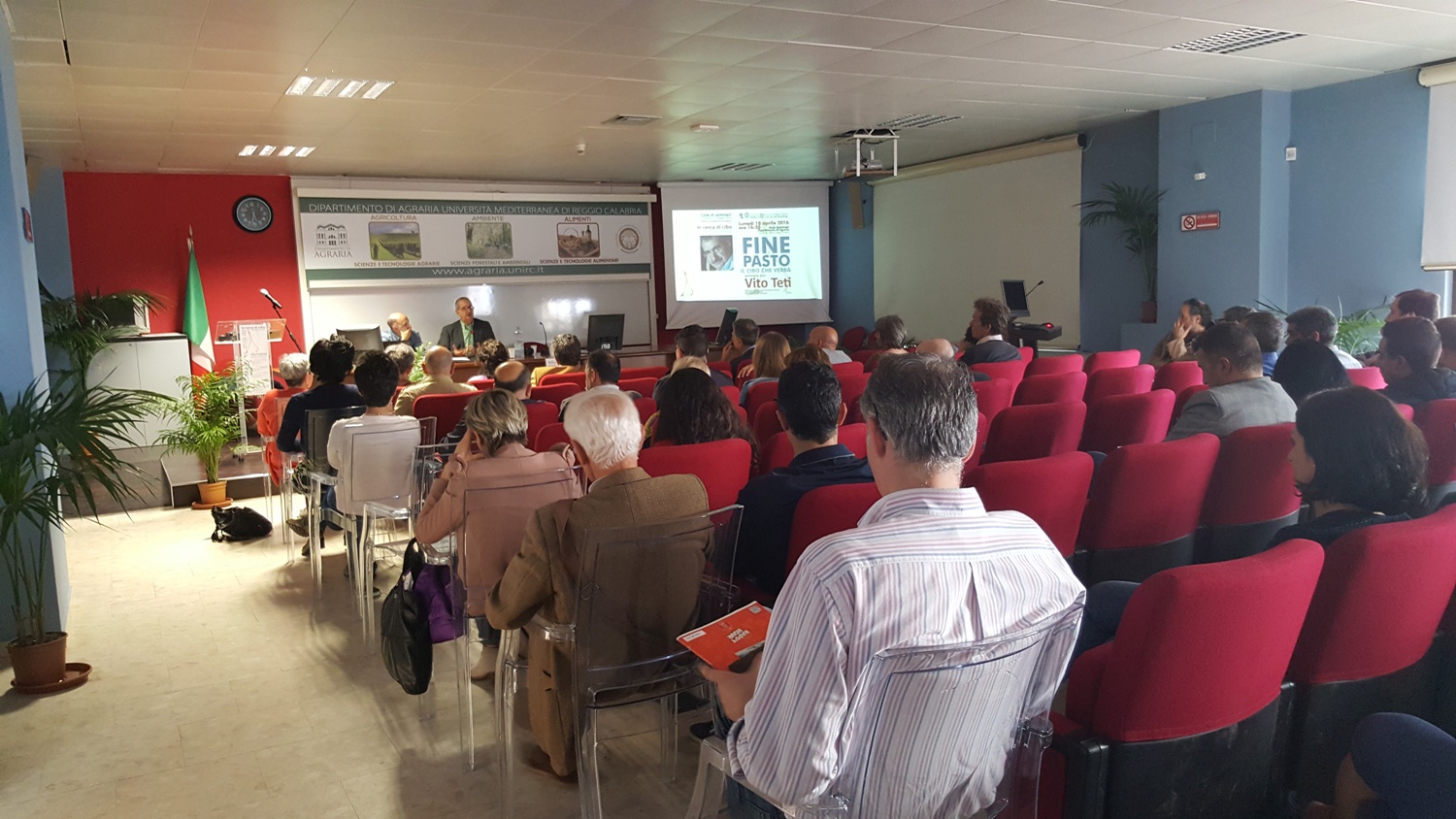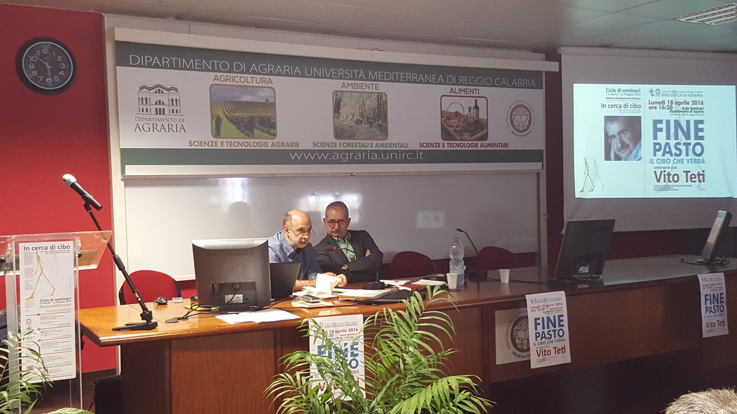 Al termine della presentazione il prof. Teti ha risposto alle domande del pubblico, attento e numeroso. Durante il dibattito sono stati toccati, tra gli altri, i temi legati alla valorizzazione dei territori e delle tipicità locali, dell’educazione alimentare, della cultura e degli usi alimentari calabresi, della documentazione e dello studio delle tradizioni popolari, del rapporto tra i soggetti sociali e le istituzioni. Al termine dell’incontro il Prof. Di Fazio, delegato ai servizi di Biblioteca del Dipartimento di Agraria, ha sottolineato l’importanza del punto di vista suggerito dal Prof. Teti, rilevandone la sintonia con il senso del ciclo di seminari promosso dalla biblioteca. In quest’ultimo, infatti, si privilegia un approccio multidisciplinare alla tematica alimentare: aspetti diversi - produttivi, culturali, etici, ambientali - sono chiamati a confrontarsi e a dialogare. In tale direzione, il prossimo incontro del ciclo di seminari rappresenta un ulteriore interessante sviluppo dei temi trattati: giovedì 28 aprile alle 17 il Prof. Stefano Bocchi dell’Università di Milano (agroecologo, curatore scientifico del Parco della Biodiversità di Expo2015) terrà un seminario sul tema “Il paesaggio è una tavola imbandita: alimenti, biodiversità, agri-culture”.