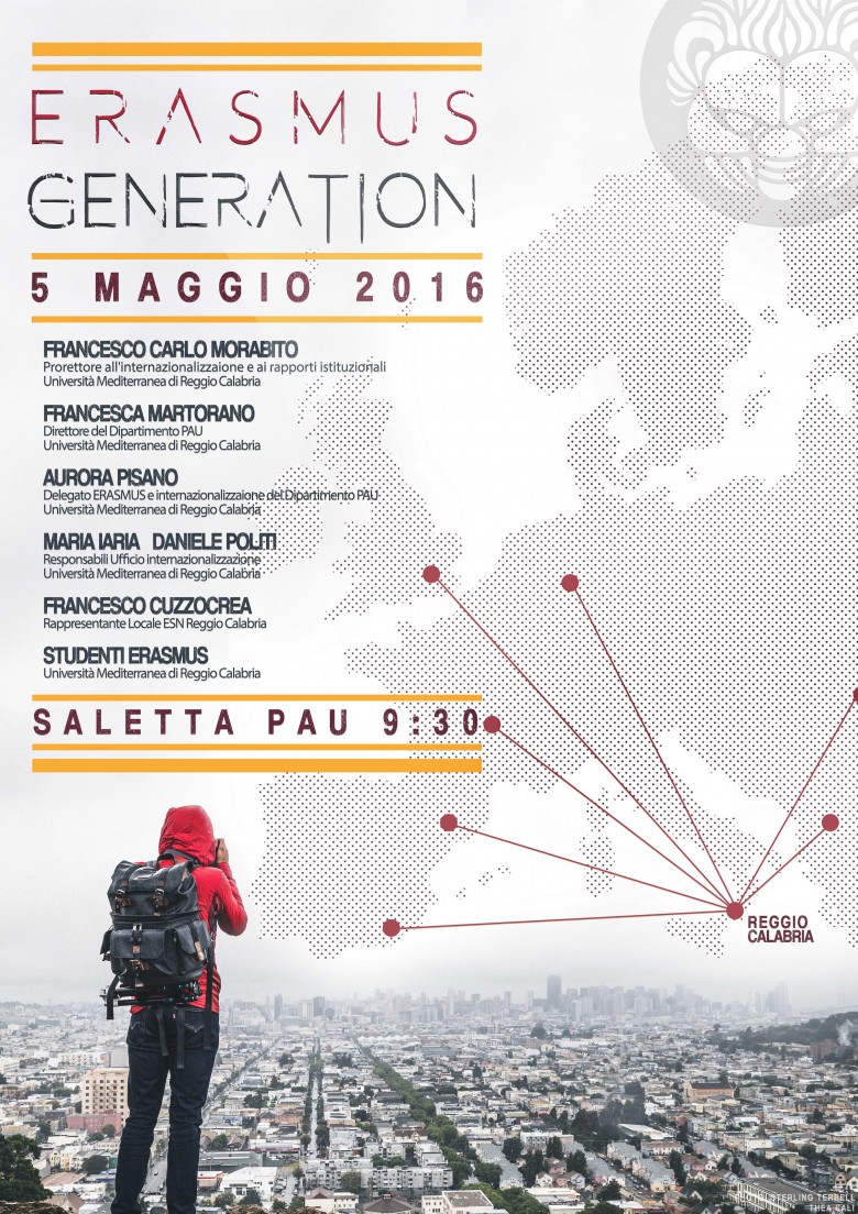 In vista degli imminenti bandi Erasmus 2016/2017, il Dipartimento PAU, insieme al prorettore all’internazionalizzazione prof. Carlo Morabito, organizza, il 5 maggio alle 9.30 presso la Saletta del Pau, un incontro sul tema rivolto a tutti gli studenti della Mediterranea.