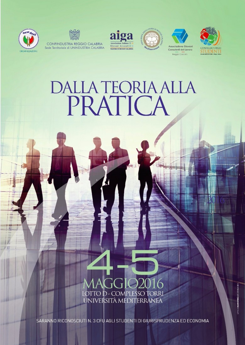 La New Deal nel proporre il convegno "Dalla teoria alla pratica" intende offrire agli studenti un'opportunità di confronto con coloro che quotidianamente esercitano la libera professione. Certi del valore indiscusso dello studio approfondito che ogni giorno svolgiamo all'interno delle aule universitarie, siamo convinti che sia diventato strettamente necessario accompagnare lo studio teorico all'attività pratica. In questo modo lo studente potrà approcciarsi diversamente al mondo del lavoro e delle professioni e giungere a conseguire la laurea con un obiettivo futuro ben preciso e strutturato. L'idea del convegno nasce dalla curiosità degli studenti di andare oltre lo studio memnotico quotidiano cercando di applicarlo alla vita pratica di un professionista. Come si redige un atto? Cosa significa effettivamente "creazione d'impresa" ? Come si strutturano l'accusa e la difesa durante un processo penale? Tutti quesiti che solo un professionista che frequenta abitualmente le aule processuali o che vive da vicino le dinamiche delle imprese e delle aziende può chiarire agli studenti. Niente paura però ! La simulazione prevista è solamente un gioco per riuscire a calarsi per un momento nelle vesti del professionista! Non serve aver sostenuto esami particolari o aver chissà quale esperienza, basta solamente un po' di buona volontà e voglia di lavorare in gruppo divertendosi!