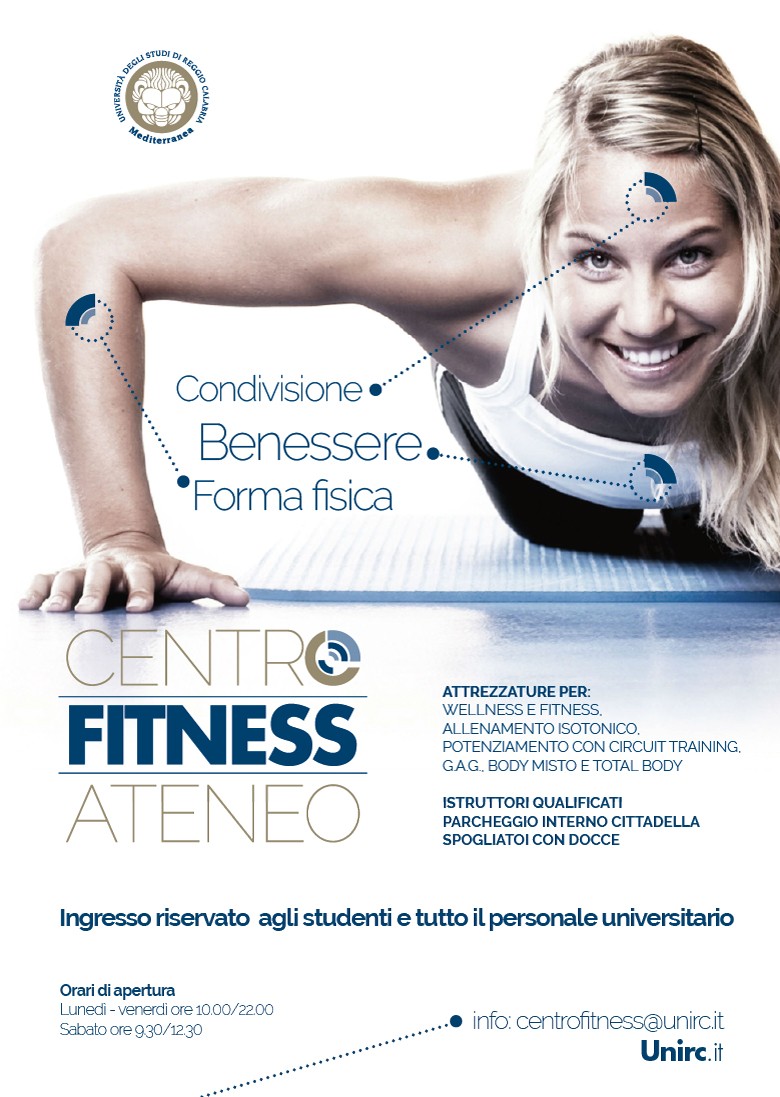 Da lunedì 16 maggio alle ore 10,00 aprirà il Centro Fitness di Ateneo, situato all'interno della Cittadella Universitaria sotto Aula Magna di Ateneo "A. Quistelli" (accanto al campo di calcetto)