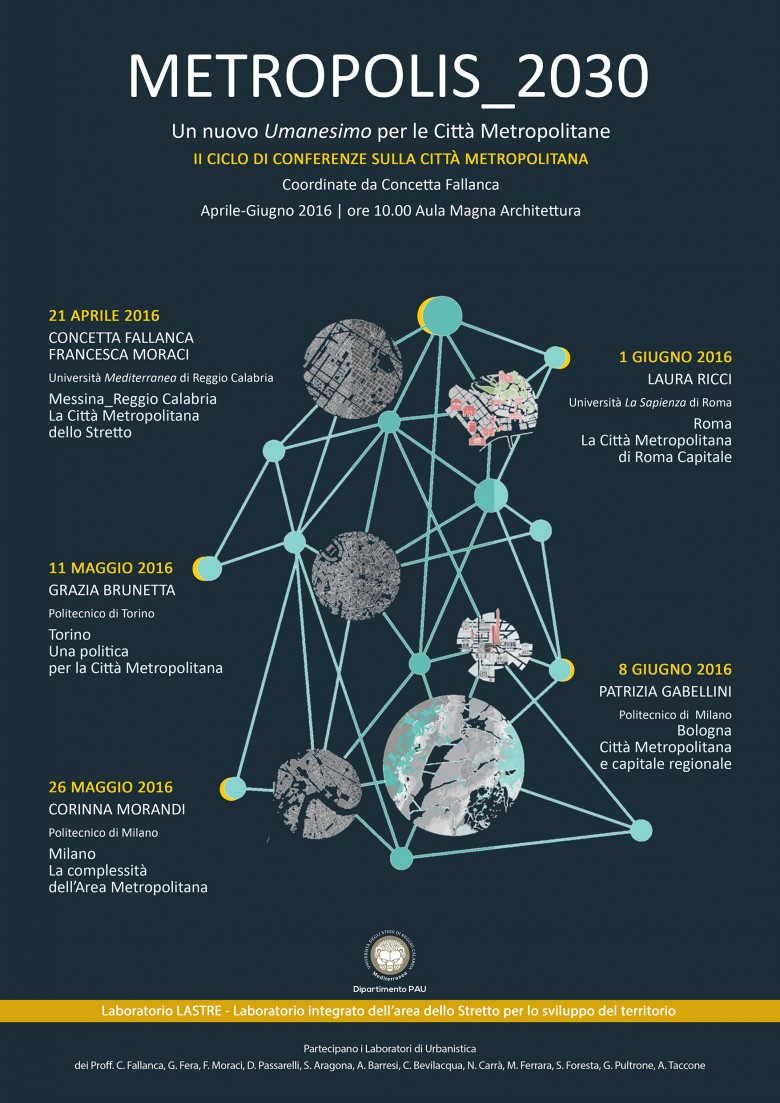 Il II ciclo di conferenze riapre la riflessione avviata lo scorso anno con i contributi di Rinio Bruttomesso, Maurizio Carta, Carlo Gasparrini, Hanae Bekkari e Angel Martinez Baldò che hanno presentato i progetti che riguardano le metropoli d’acqua nel bacino del mediterraneo (Napoli, Palermo, Tangeri, Valencia). Dal particolare osservatorio universitario ci si interrogherà sulle responsabilità sociali delle città metropolitane italiane, che oggi sembrano alimentare segregazioni e disuguaglianze. Le conferenze, infatti, tenute da professori universitari di grande esperienza, del settore scientifico disciplinare Icar 21-Urbanistica, proseguiranno con: Laura Ricci de La Sapienza di Roma, Concetta Fallanca e Francesca Moraci, professori della Mediterranea di Reggio Calabria.