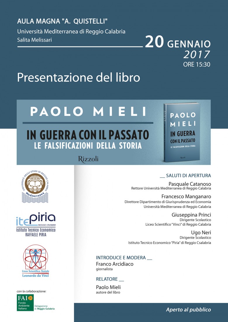 Un evento di rilievo culturale organizzato dal Dipartimento di Giurisprudenza ed Economia d'intesa con l'Istituto Tecncico Economico "Piria" ed il Liceo scientifico "Leonardo da Vinci". Paolo Mieli, noto giornalista e storico, presenta il suo ultimo volume, introdotto dal giornalista Franco Arcidiaco.