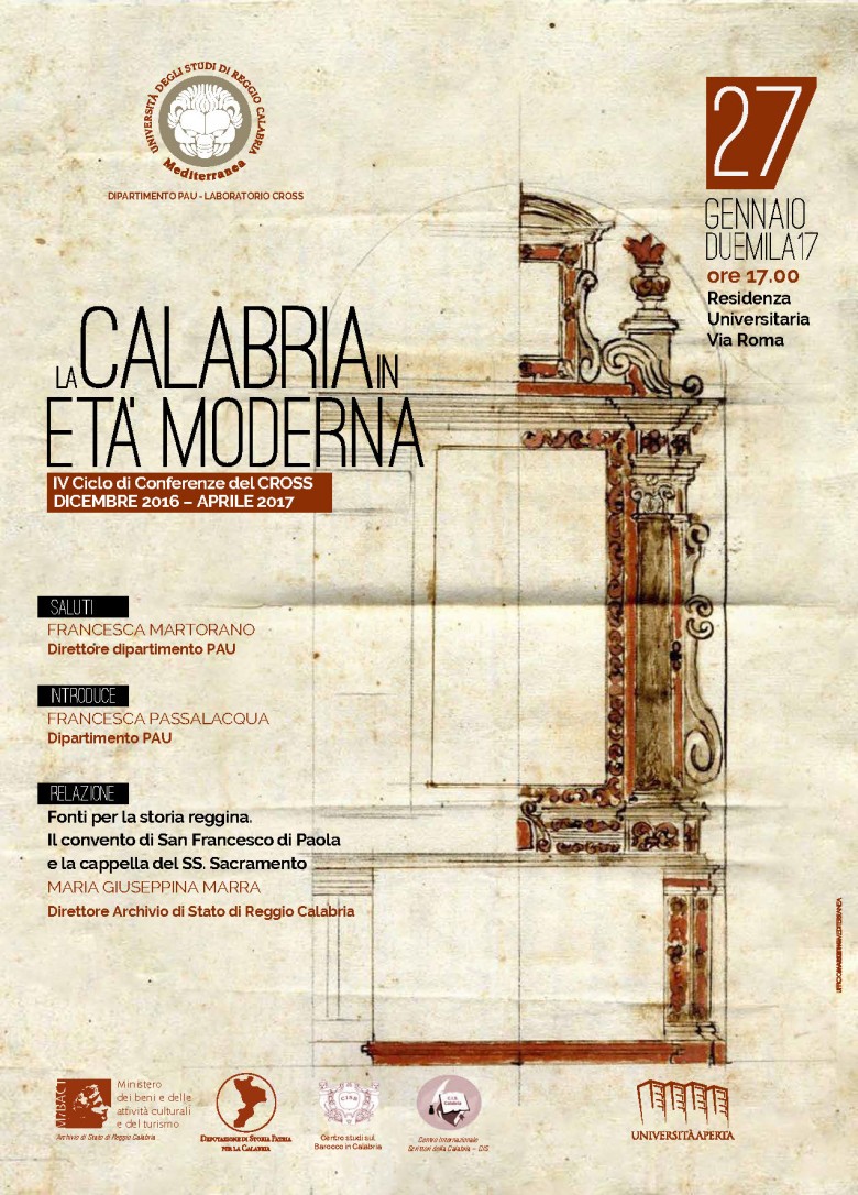 27 gennaio “La Calabria in età moderna” IV ciclo conferenze Laboratorio Cross – 2° incontro