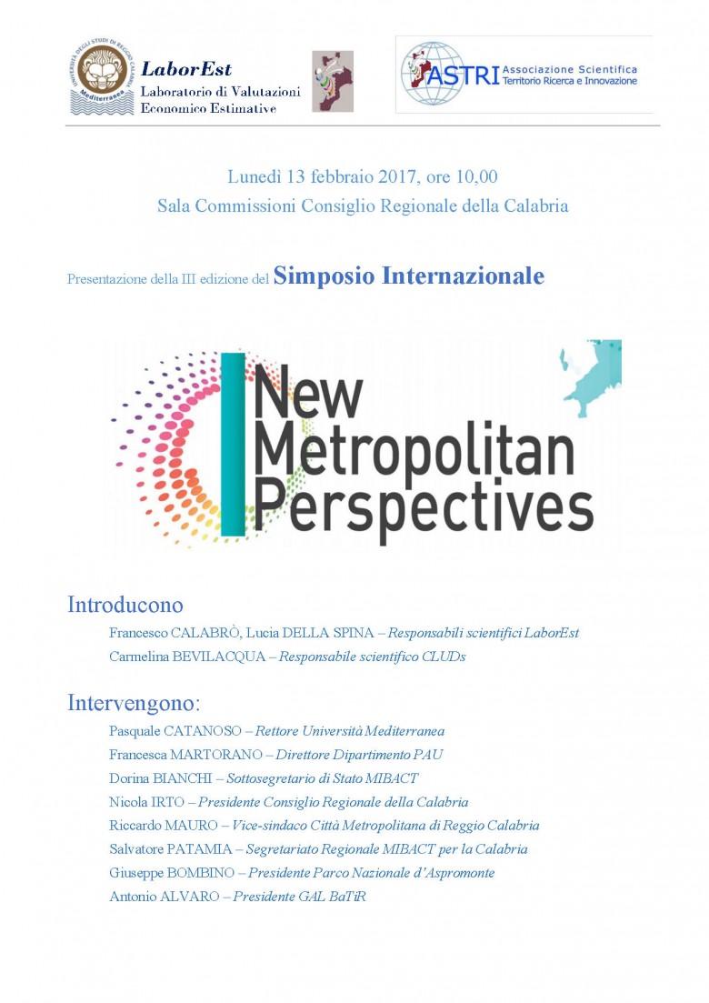 Il simposio internazionale "New Metropolitan Perspectives", tenutosi presso la Mediterranea nel maggio 2016 e giunto alla seconda edizione, aveva riscosso unanimi consensi presso i numerosi e autorevoli studiosi italiani e stranieri che vi avevano partecipato.