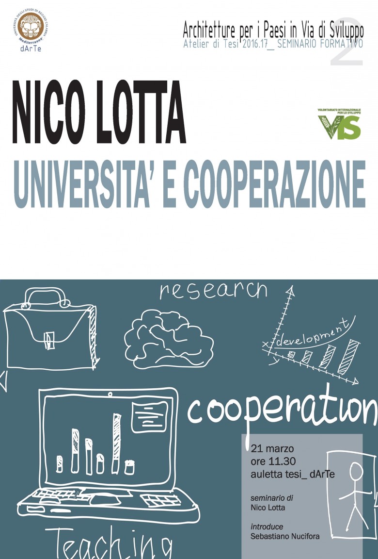 Nel primo seminario l’ing. Nico Lotta parlerà dei processi e delle azioni che le università e le ONG possono attivare per una formazione integrata di giovani architetti che intendono operare nel campo della cooperazione internazionale nei PVS.