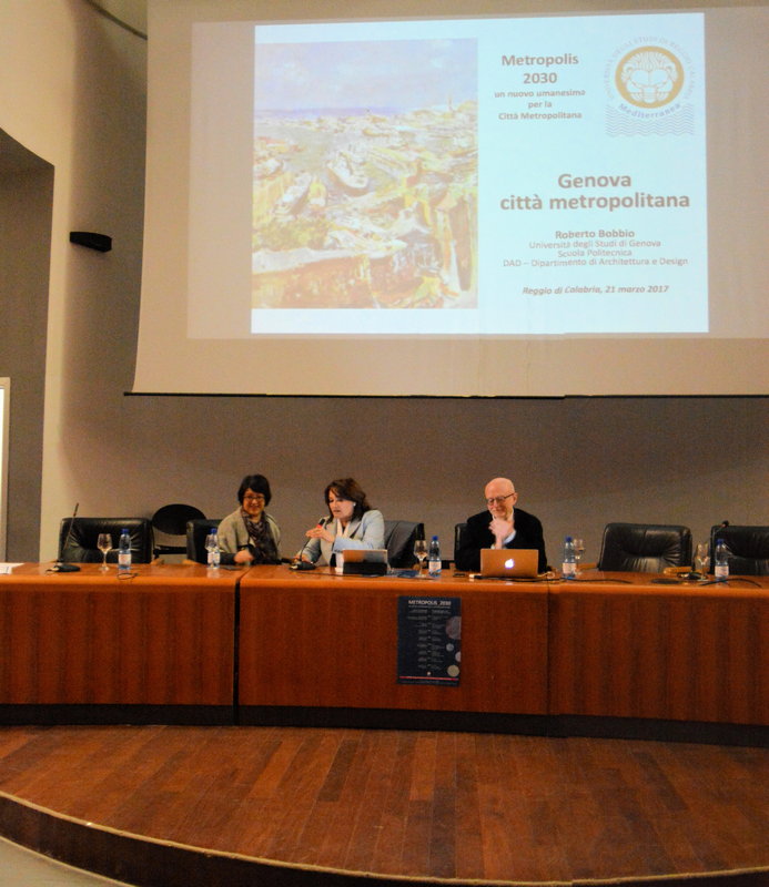 Il suo intervento è stato strutturato in più punti dove sono stati descritti: l'anomalia genovese e le metropoli possibili; le morfologie e gli insediamenti del territorio; il paesaggio; i due “lobi” della metropoli; gli anni della crisi e la ricerca di nuovo sviluppo verso prove di piano.