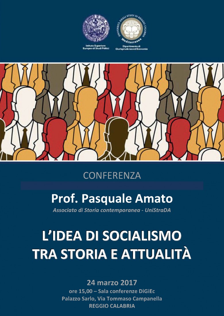 Il Corso 2016-2017 della Scuola di cultura politica prosegue con la conferenza del prof. Pasquale Amato su 'L'Idea del socialismo tra storia e attualità' che si terrà venerdì 24 marzo alle ore 15,00 presso Palazzo Sarlo, Aula interna.
